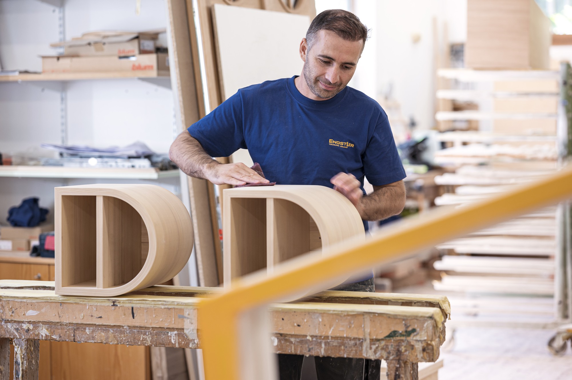 Von Anfang an fokussieren wir uns auf Ihre Wünsche und lassen bei allen Überlegungen die Raumsituation nie aus den Augen. Als Tischler sind wir mit dem Werkstoff Holz „verwachsen“. In den Verbindungen mit Glas, Metall, Stein oder Kunststoff finden wir spannende und in sich harmonische Lösungen.